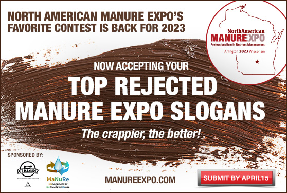 The “Top 10 Rejected Manure Expo Slogans” contest has been an Expo highlight since 2015. Since the inception of this contest, hundreds of manure-themed messages have been collected from participants all over the world.