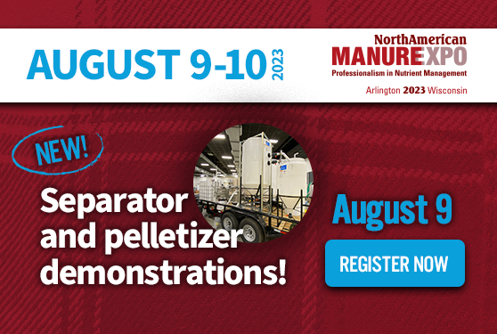 The North American Manure Expo returns to Wisconsin next week to bring you the latest in manure technology. New this year, you can witness live demonstrations of three different manure separators and a manure pelletizer, along with agitation and land application demonstrations.