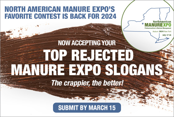 The North American Manure Expo will take place this July 17-18 in Auburn, NY. But before that, there’s a lot of planning and prep to do – including selecting our top rejected slogans for 2024!
