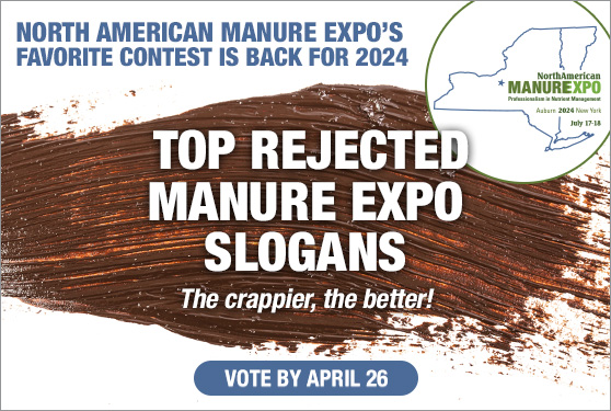 Officials with the North American Manure Expo – held July 17-18 in Auburn, NY – are now in the process of selecting which rejected Manure Expo slogans will appear on the Expo’s annual T-shirts!