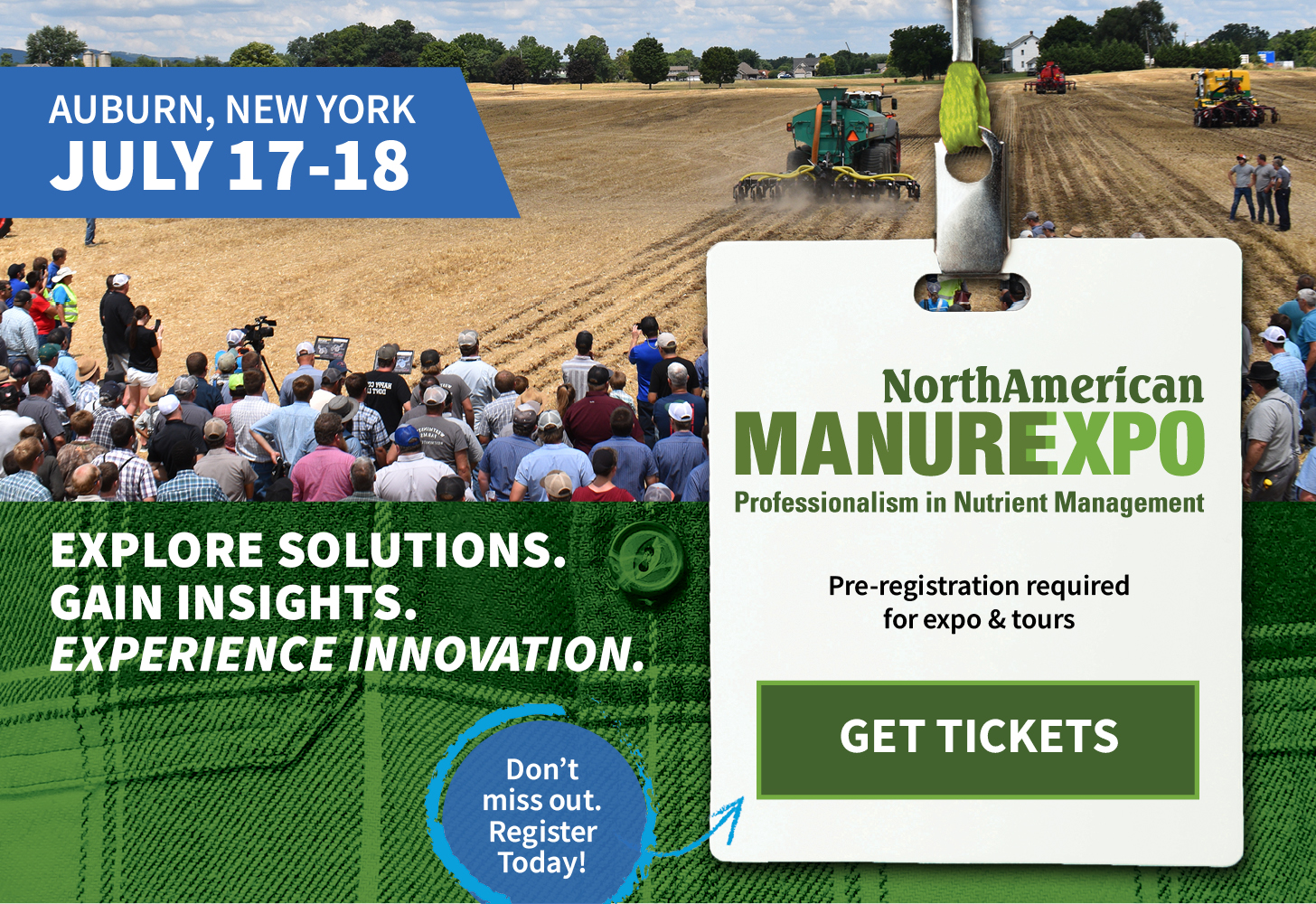 This July, experience the North American Manure Expo in Auburn NY. Coming to the Finger Lakes region for the first time, the Expo offers two days of tours, demonstrations, education sessions and networking, all delivering the latest and greatest in manure management solutions and technologies.