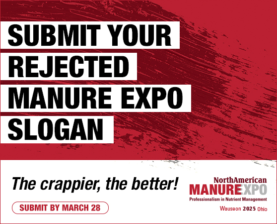 You can make your mark on this year’s North American Manure Expo – held July 30-31 in Wauseon, OH – by submitting your best (or crappiest) idea for the 2025 Rejected Slogan contest. But there’s not much time left. Submissions close March 28!