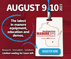 The North American Manure Expo is returning to the University of Wisconsin-Madison Arlington Agriculture Research Station. This two-day event will feature more than 60 vendors as well as education sessions, tours, and field demonstration events. Register today for early bird pricing on tours.