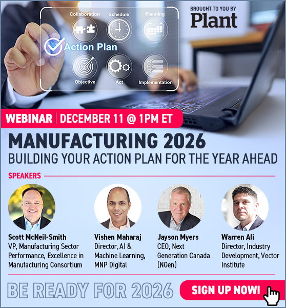 Time is almost up! On December 11, Plant’s webinar Manufacturing 2026: Building Your Action Plan for the Year Ahead brings together top voices in Canadian manufacturing for a discussion on business strategies for the year ahead.