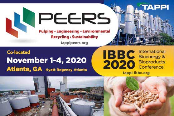 TAPPI invites you to present at its co-located conferences, Pulping, Engineering, Environmental, Recycling and Sustainability (PEERS) and the International Bioenergy & Bioproducts Conference (IBBC), November 1 – 4, 2020 in Atlanta, GA USA. Poster submissions are also encouraged.
