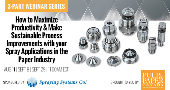 Learn how to make your production processes for your machines more sustainable to cut maintenance time, maximize uptime, and reduce costs. The Paper Industry experts from Spraying Systems Co. will provide insight and guidance on how to analyze your process to reduce water usage, save on energy costs, and improve your process efficiency. A wide range of applications will be discussed including automatic brush showers, tank wash, compressed air usage, and more.