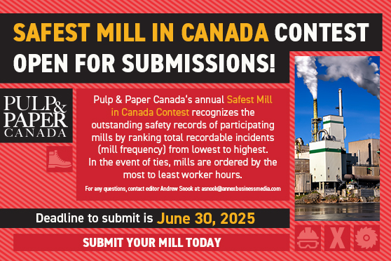 Pulp & Paper Canada‘s annual Safest Mill in Canada Contest recognizes the outstanding safety records of participating mills by ranking total recordable incidents (mill frequency) from lowest to highest. In the event of ties, mills are ordered by the most to least worker hours.