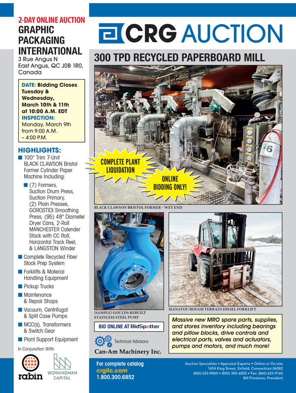2-Day Online Auction – 300 TPD Recycled Paperboard Mill