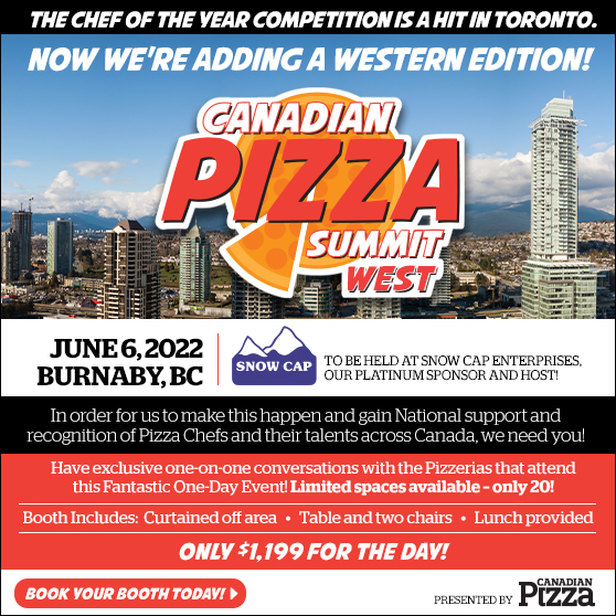 This year we at Canadian Pizza are proud to present the first-ever Pizza Summit West and Chef of the Year Competition in Burnaby, B.C., at the Innovation Centre of our host and Platinum Sponsor, Snow Cap Enterprises on Monday, June 6!