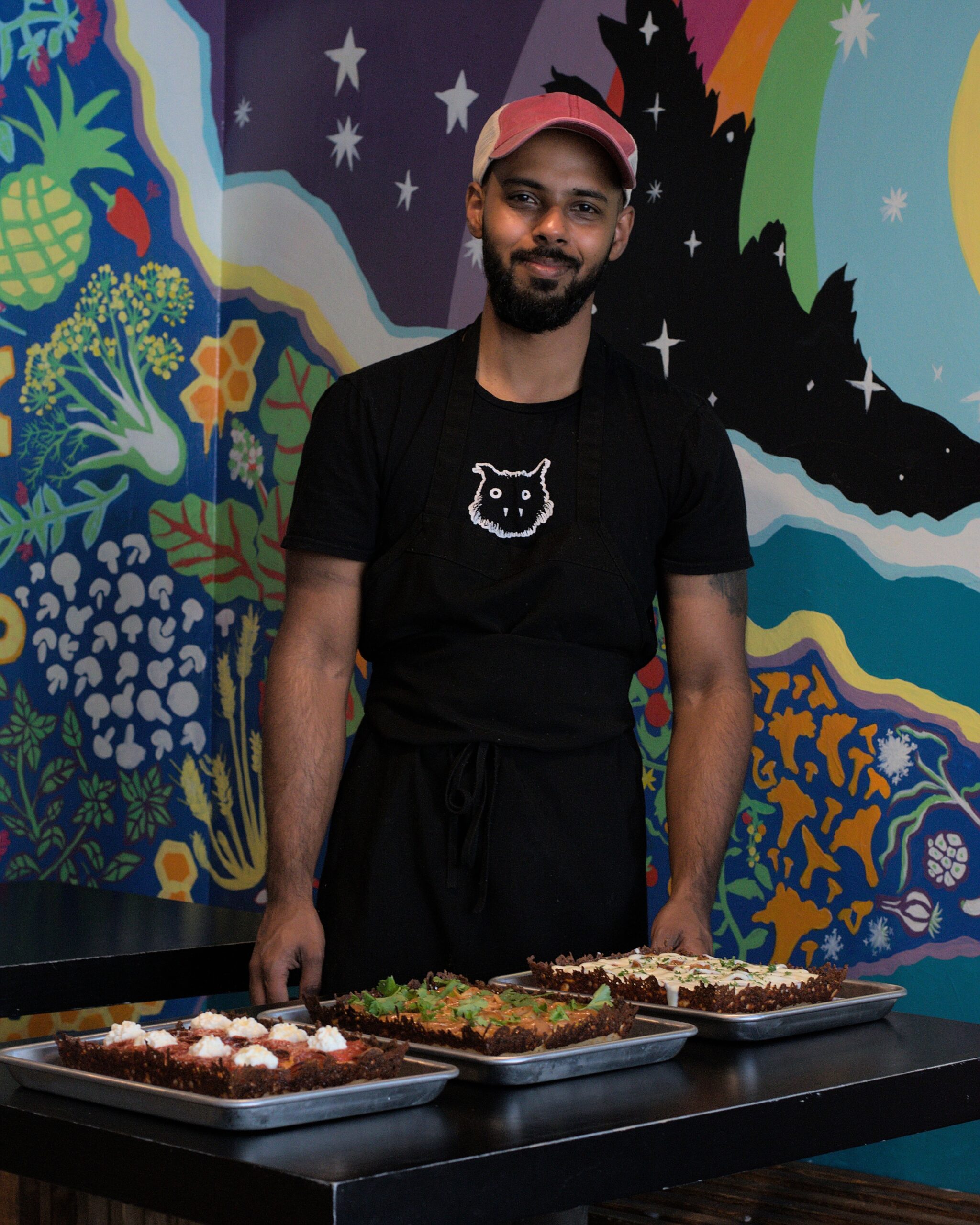 When Toms immigrated from Kerala, India, years ago, he encountered what he calls “Newfoundland style” that is widely served in the province and essentially a pan pizza: Greek-style with a thicker crust. While working at a pizzeria, he used his spare time to learn to make Detroit-style pizza, a specialty on which he built Black Cat.