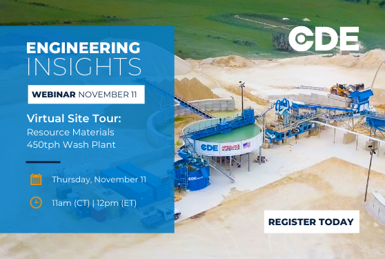 | Next up in CDE's Engineering Insights webinar series, CDE will be presenting a virtual site tour of the Resource Materials Inc. new 450tph sand & aggregate wash plant.