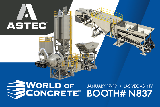 | January 17-19, 2023 Astec will be at World of Concrete 2023 in Las Vegas at booth #N837 - ready to greet our friends in the concrete industry! World of Concrete is the ONLY annual international event dedicated to the commercial concrete and masonry construction industries.