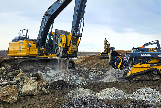 Attach our jaw crusher buckets to any of the heavy machinery in your fleet and begin to process overburden or wastage to produce aggregates. It is as simple as -scoop, crush, use- and the cost per ton is ridiculously low. Why? Well while traditional methods are often time-consuming, labour-intensive, and require transportation costs that shoot up the expenses, our units are installed in a few hours, Then they work and travel attached to the carrier, a one-man one-machine operation.
