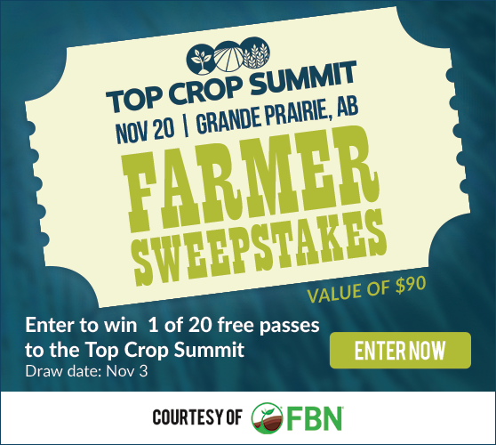 The Farmer Sweepstakes are now open for the Alberta Top Crop Summit – and you have the chance to win one of 20 free passes to the event.