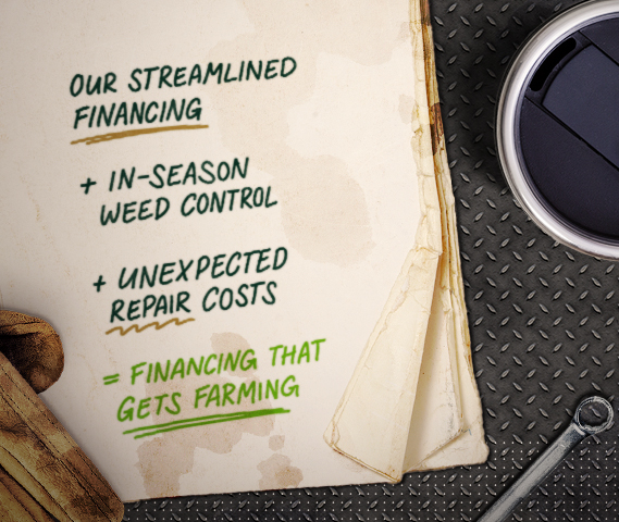 Now is the time to lock in financing to support your seed, at-plant nutrition and in-season protection purchases with a partner who gets farming. We offer convenient financing geared to your crop revenue cycles to help you meet cash flow objectives and plan with confidence.