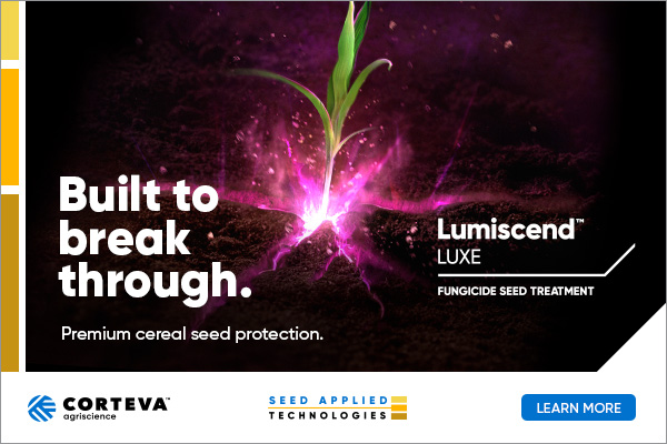Now, there’s a new standard in cereal fungicide seed treatment – Lumiscend™ LUXE. Protecting cereal crops from early-season seed- and soil-borne diseases, this premium seed treatment from Corteva Agriscience is built to break through with a powerful combination of four active ingredients, including the unique active Inpyrfluxam – a proven performer on Fusarium and Rhizoctonia.
